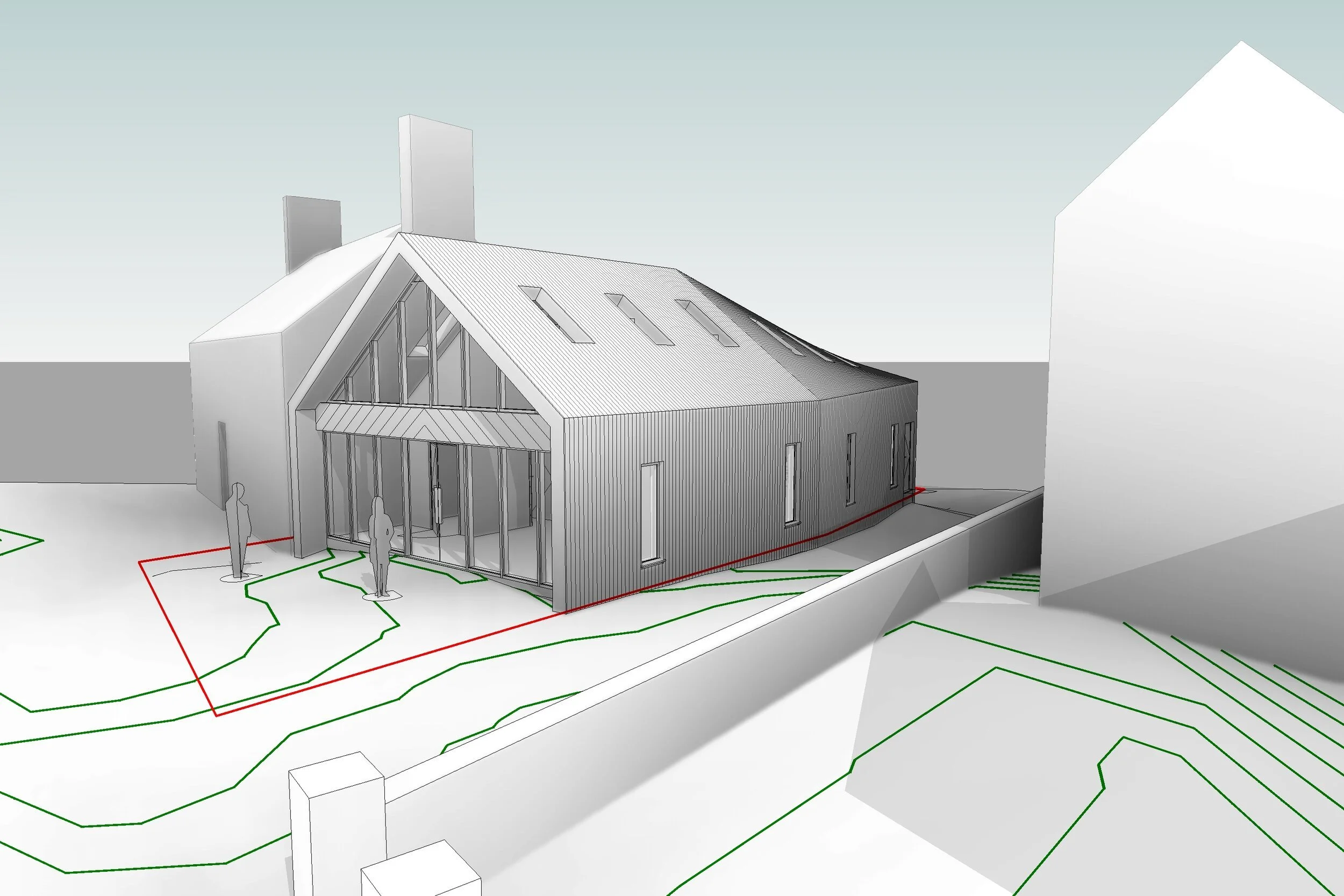 One option presented to the client for consideration, is remarkably similar to the initial concept sketch, requiring little further development to the external form.